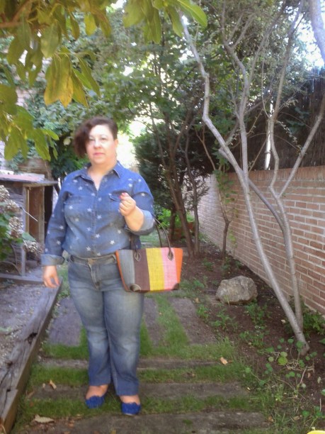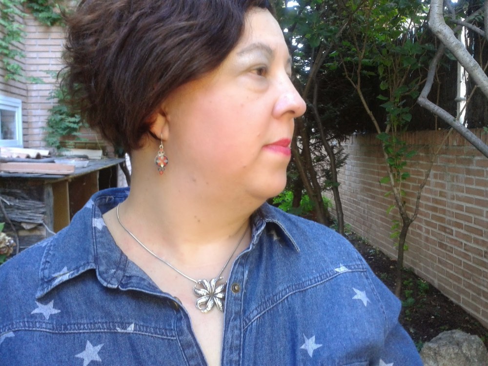 En estos días ya calurosos apenas he utilizado vaqueros porque no son tan frescos como el lino u otras fibras más ligeras. Sin embargo, aprovechando que íbamos un día al campo he retomado su uso pues son cómodos. He utilizado unos jeans de MS antiguos combinándolos con una camisa vaquera con estrellas y unas bailarinas azulonas. Todo en los mismos tonos para no contrastar mucho y estilizar al máximo. Llevo un cesto muy cómodo en varios tonos que casa muy bien con el conjunto. Como accesorios unos pendientes en azurita, coral y nacar regalo de Miguel y Lourdes y comprados en un mercadillo de New York junto con un colgante en forma de flor en plata que no desdice mucho con los pendientes.