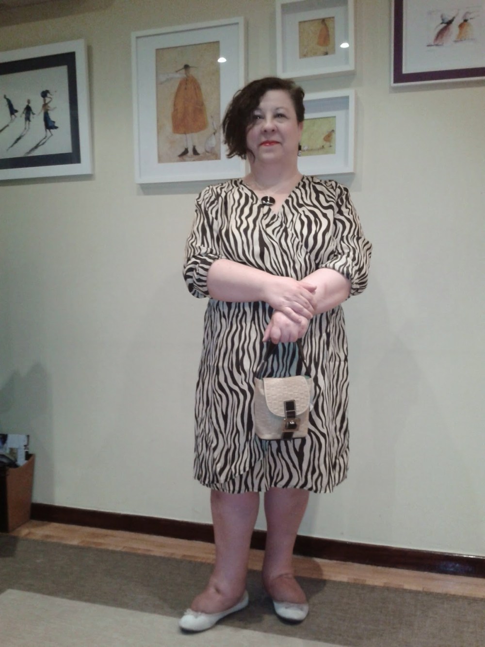 Happy Monday! Today to start a new week we have a zebra striped dress. The sliming effect of the print is carefully balanced with a conscientious design. Carmakoma, my favourite Danish brand, designs beautiful clothes for curvy women. I do admit prices are a bit high but quality is a must and, well, during the sales, you can afford to buy more than one of their creations. In this case is a fake wrap dress with elastic waistband. A vintage Tous tiny bag in the same tones as well as beige Primark ballerina flats make this look special. Earrings and pendant are gifts and both of them match perfectly with the outfit as they in black with a note of cream